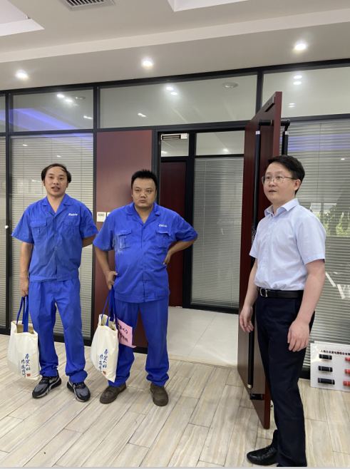 8月23日下午,奉贤区就促中心副主任薛骁闵一行来我司慰问云南贫困县员工,青村镇社区事务受理服务中心主任朱燕等陪同。