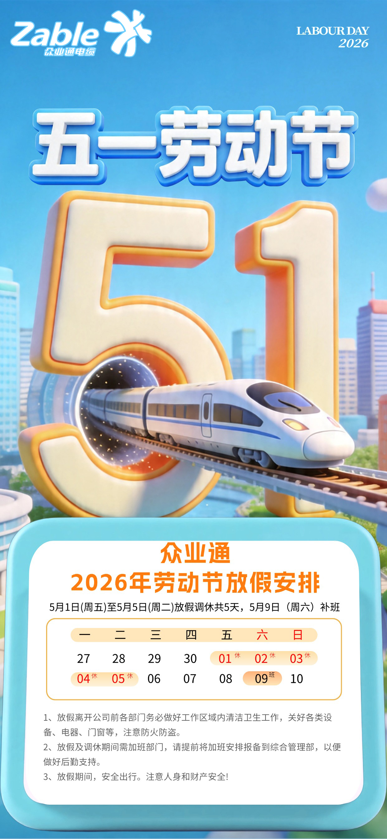 2026上海众业通电缆劳动节放假安排通知